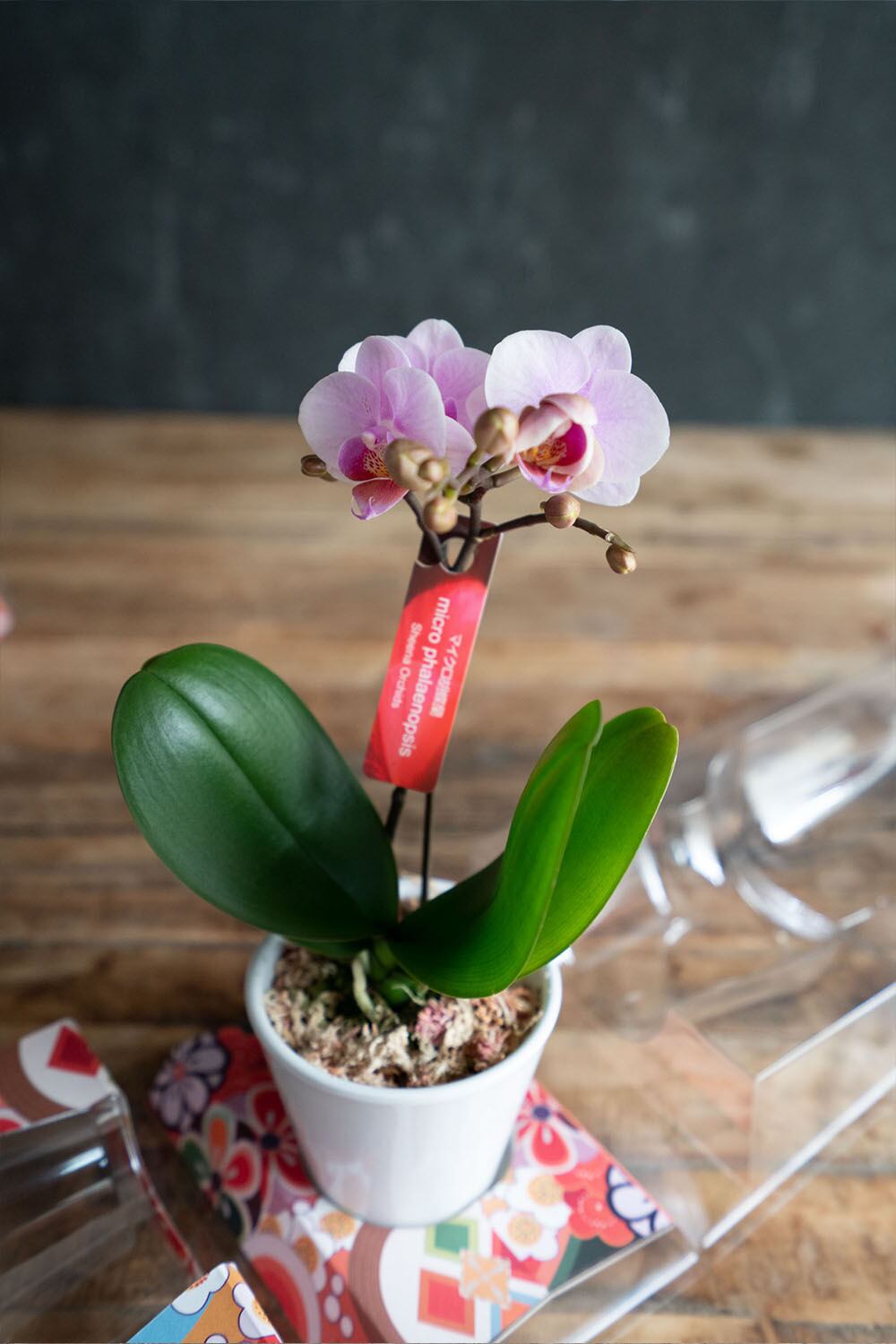 卓上にも置くことができる人気のミディ胡蝶蘭です。