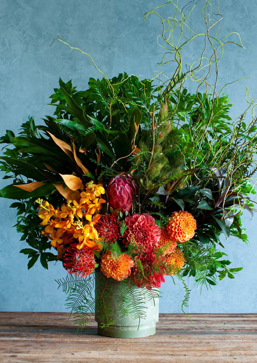 フローリストがこだわり、セレクトしたお花を使用してオレンジ系でまとめます。
